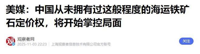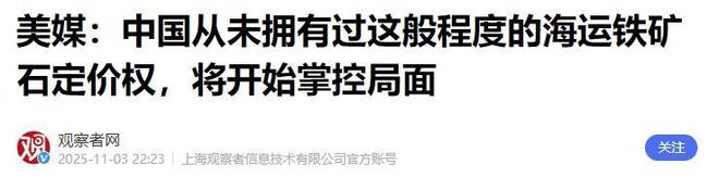 参考文献:1. 新浪财经:《图解热点:西芒杜矿年底将向中国出口铁矿石》2025-11-04 2. 观察者网:《美媒:中国从未拥有过这般程度的海运铁矿石定价权,将开始掌控局面》2025-11-03